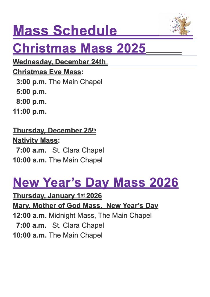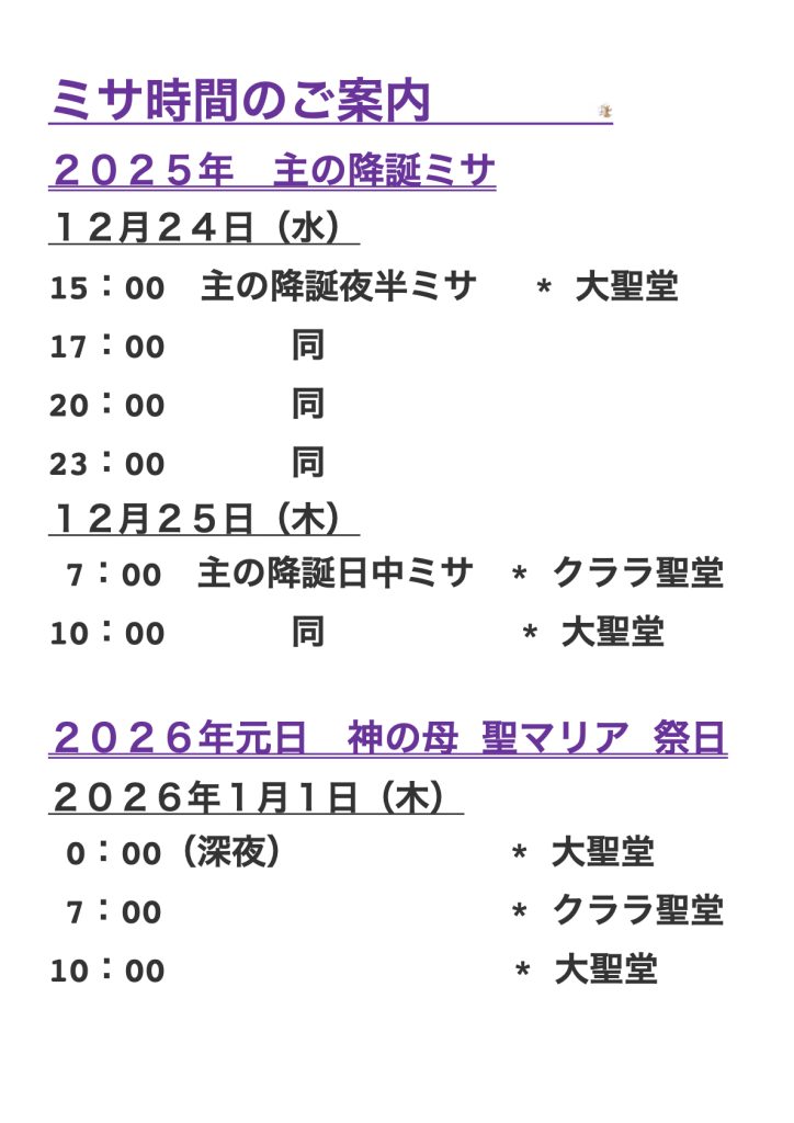 2025年クリスマス及び2026年新年ミサ スケジュールについて(典礼委員会、コーヒーサンデー係、駐車場係、2025年12月21日公開)